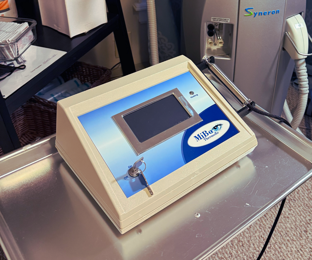 MiboFlo is a non-invasive, in-office treatment that applies therapeutic heat and gentle massage to the eyelids. This combination loosens hardened oils built up in the glands, allowing them to flow normally again.